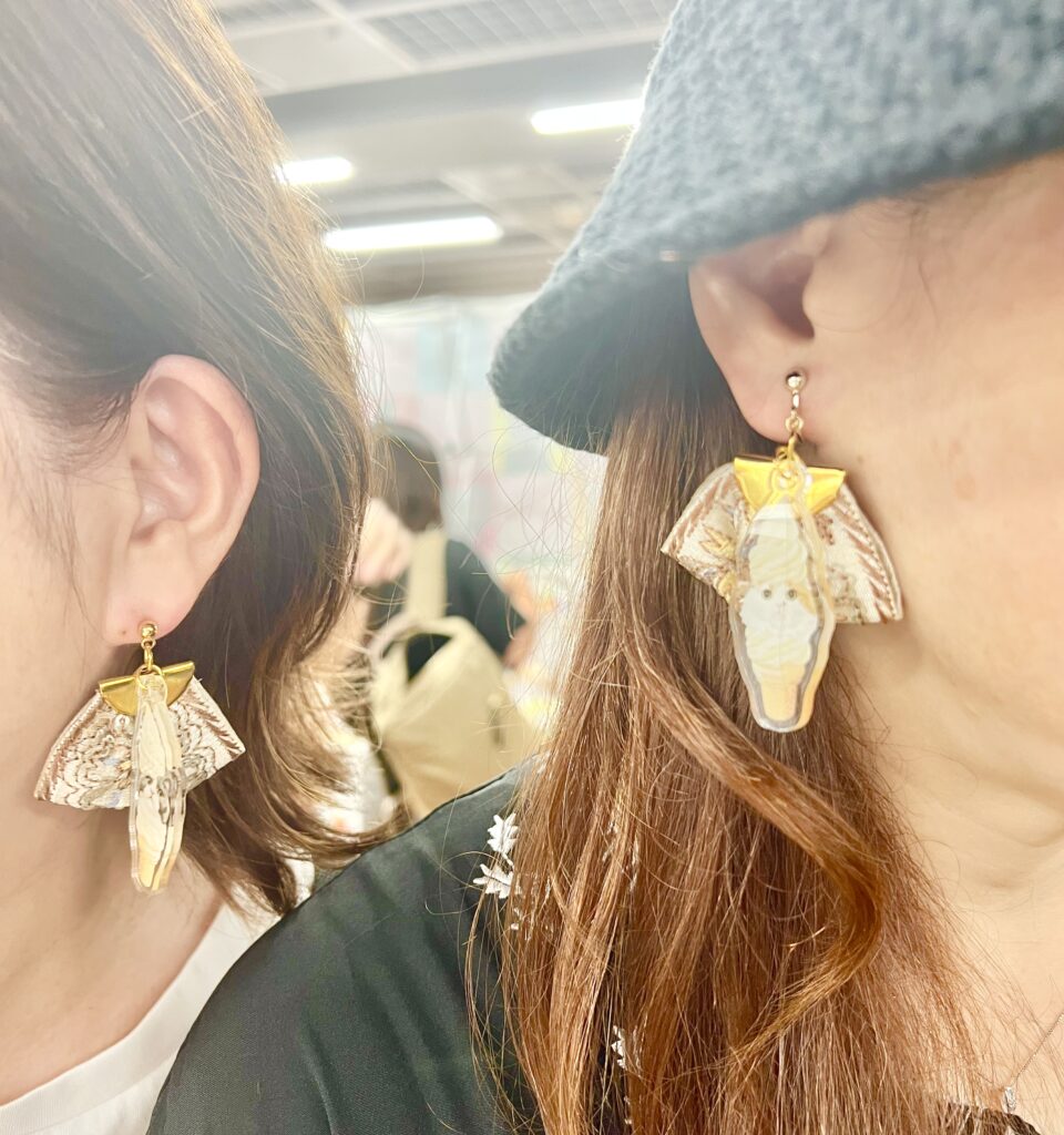 ふたりのお姉様がブースの前で、髪をみみにかきあげながら見せてくれました。