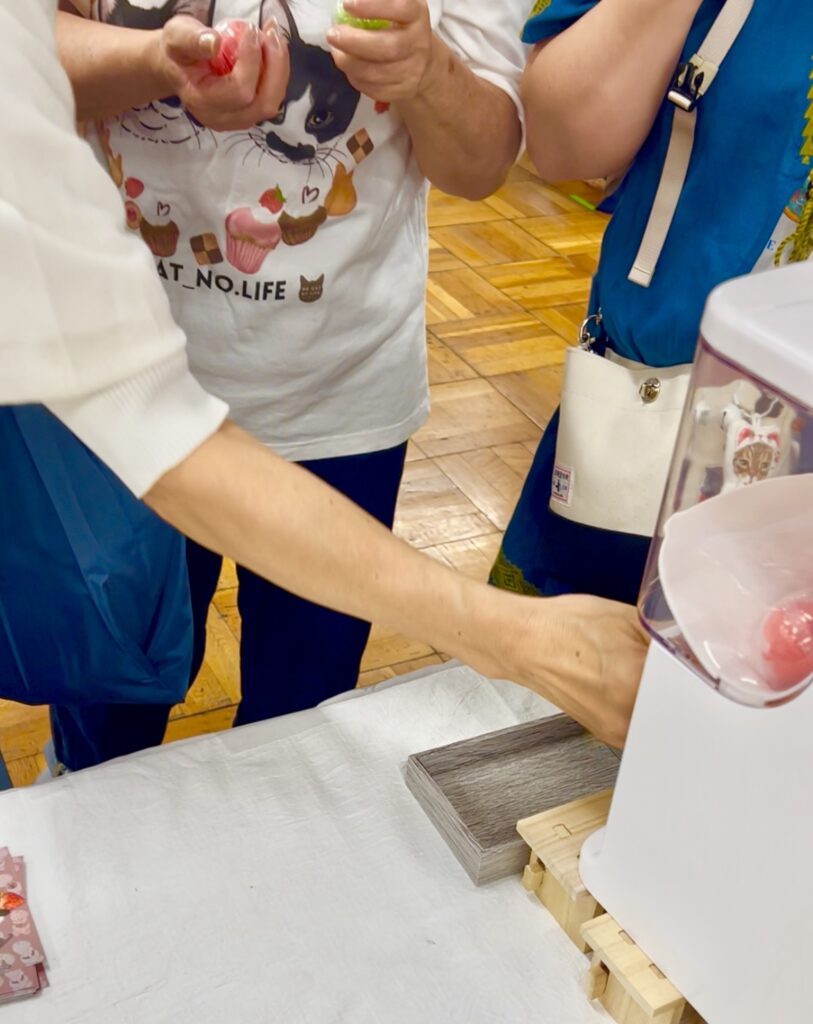 最も「ガシャポン」に興味のなさそうな、大人のお姉様達も「気になるから…イラストがあたるの?」と立ち寄ってくださいました。