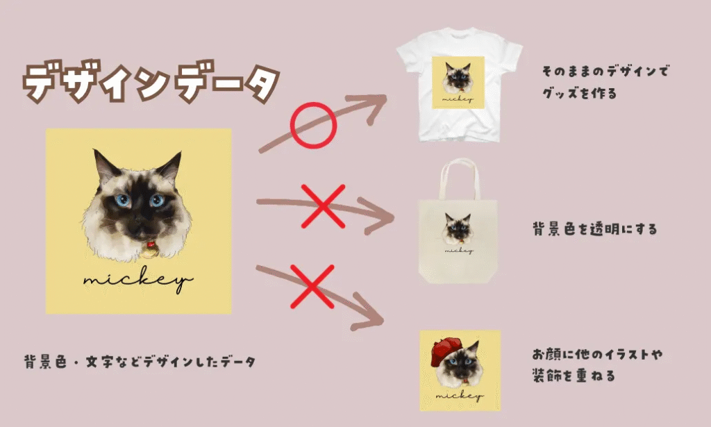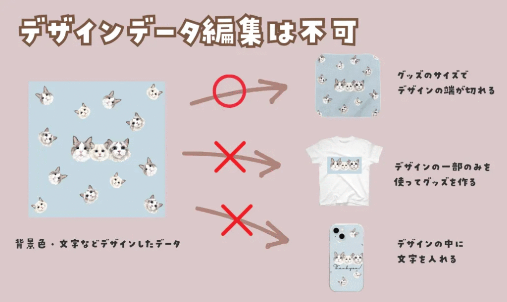 デザインデータは、制作したデザインのままでのみ使用してください。